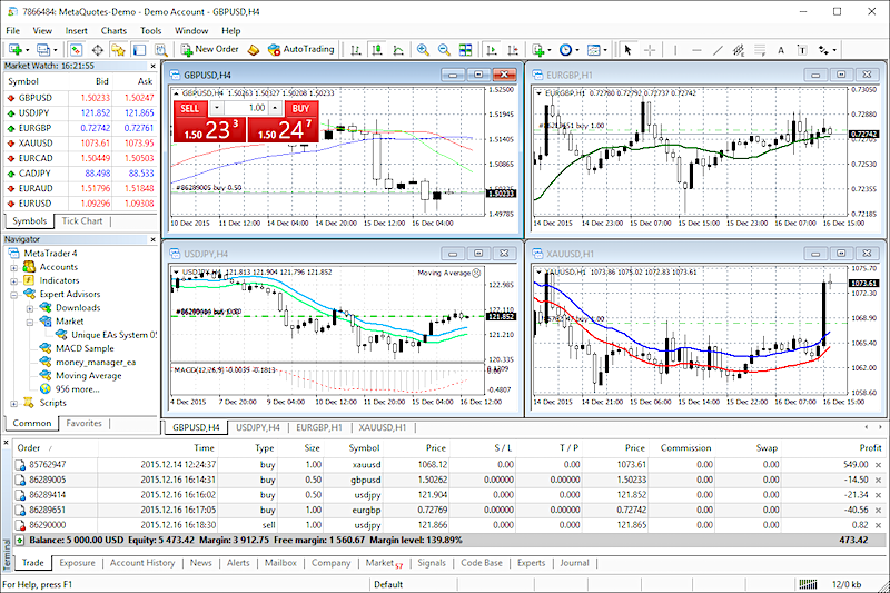 MetaTrader4 (MT4) is a trading platform software dedicated to forex,derivatives,futures,stock,CFD trading developed by Metaquotes company.It is the most mature online forex trading platform software in the market.